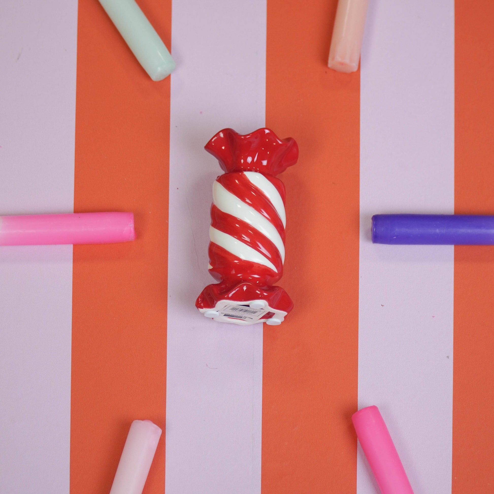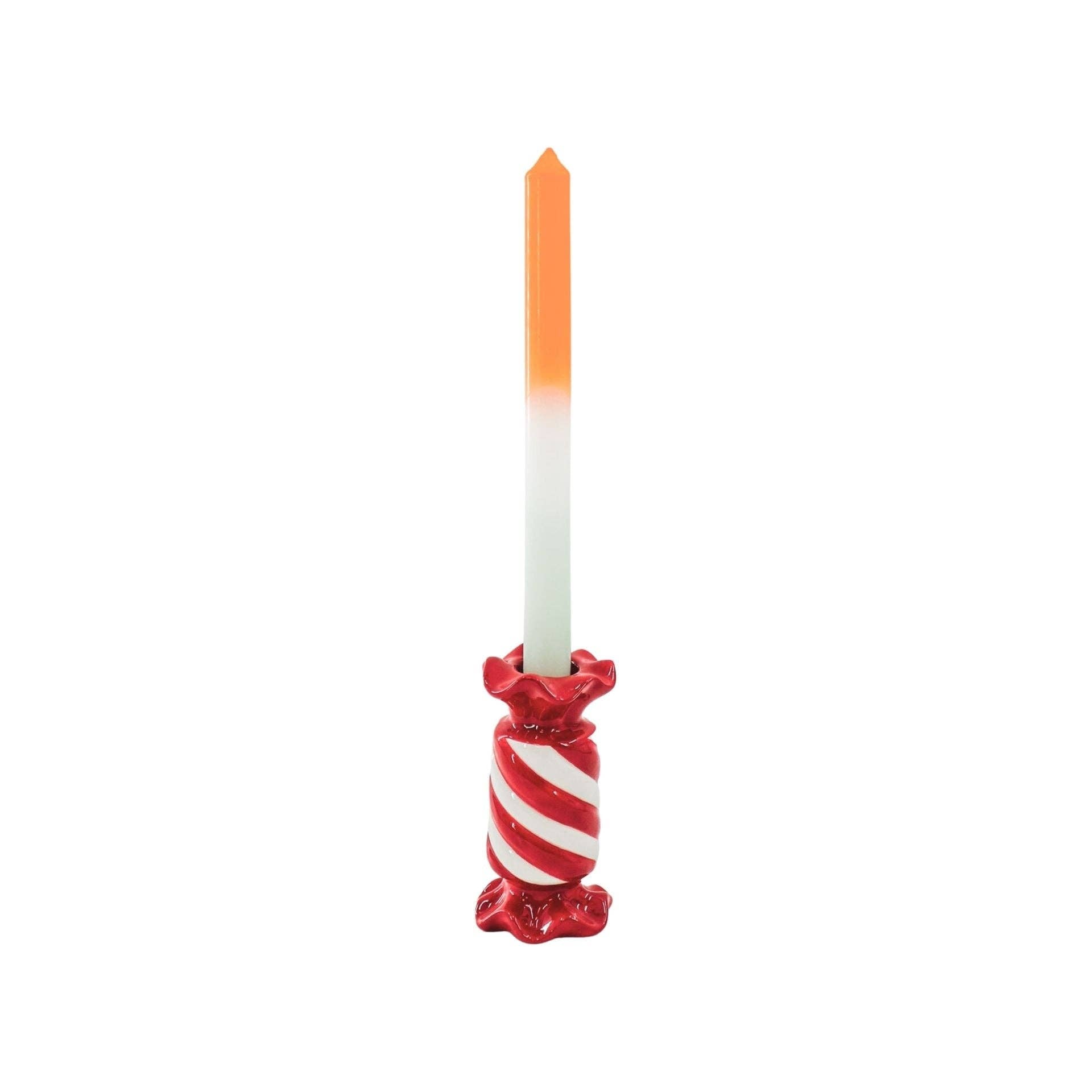 Candlestick - Toffee Candy - Ceramic - Red/White - 7.5x7.5x13 cm
