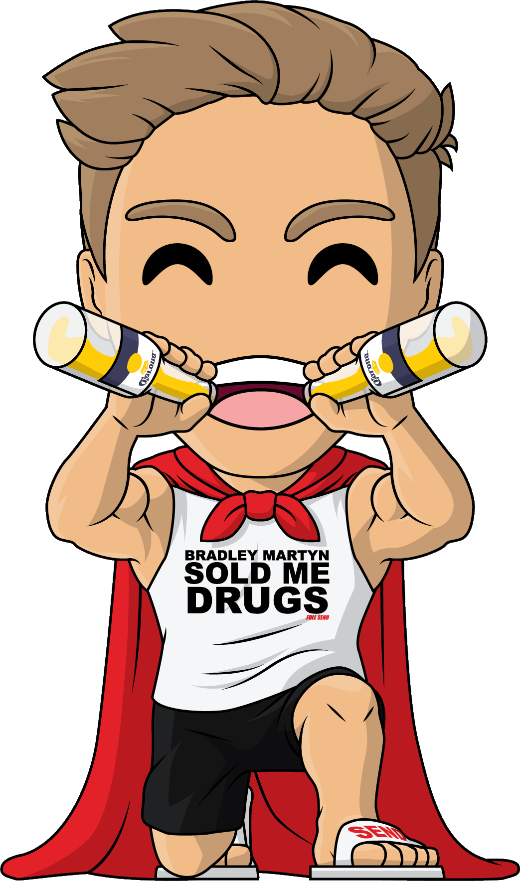 Magician, healthiest man alive, animal lover, bodybuilder, alcohol aficionado. If sending were an olympic sport, SteveWillDoIt would hold 8 gold medals. Please consume this collectible responsibly. Steve's collectible sees him draped in a red Fullsend flag, acting as a cape while he double fists two ronas. Complete with a tattoo of Demi on his thigh, and tattoo of nosebeers on his wrist, Steve wears athletic gear and Fullsend sandals. His window box features a party from the Fullsend house, and was drawn by Youtooz artists to include many of the characters that have left their marks in one way or another throughout the Nelk universe. This collectible ships in a matte, embossed outer sleeve.
