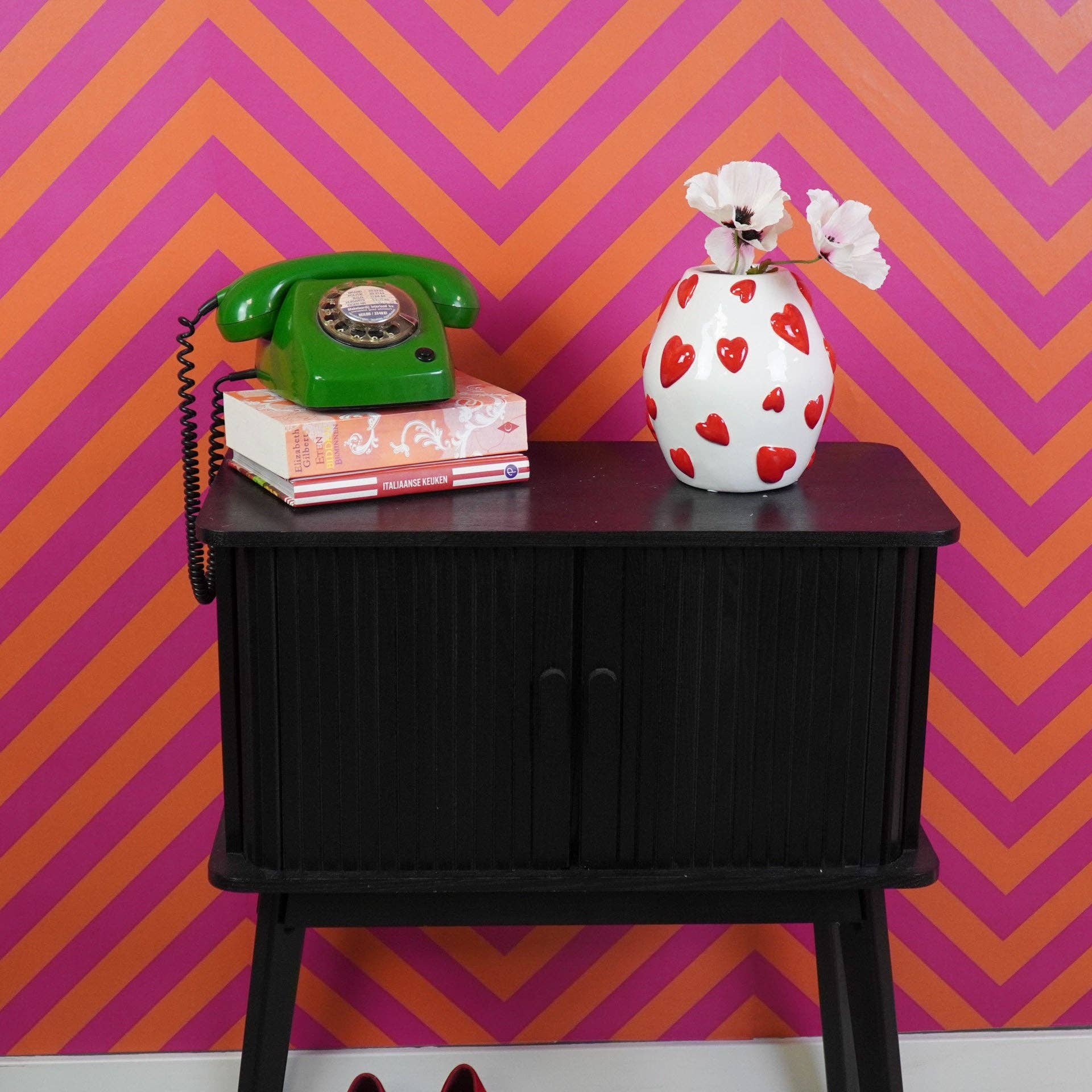 EAT YOUR HEART - Bring love and joy into your home with this beautiful heart-shaped dolomite vase in soft pink and red tones. With its playful heart design and warm colors, this flower vase is not only a functional object but also a real eye-catcher in your interior. Perfect for displaying your favorite flowers or simply as a decorative element on your table, sideboard, or windowsill.