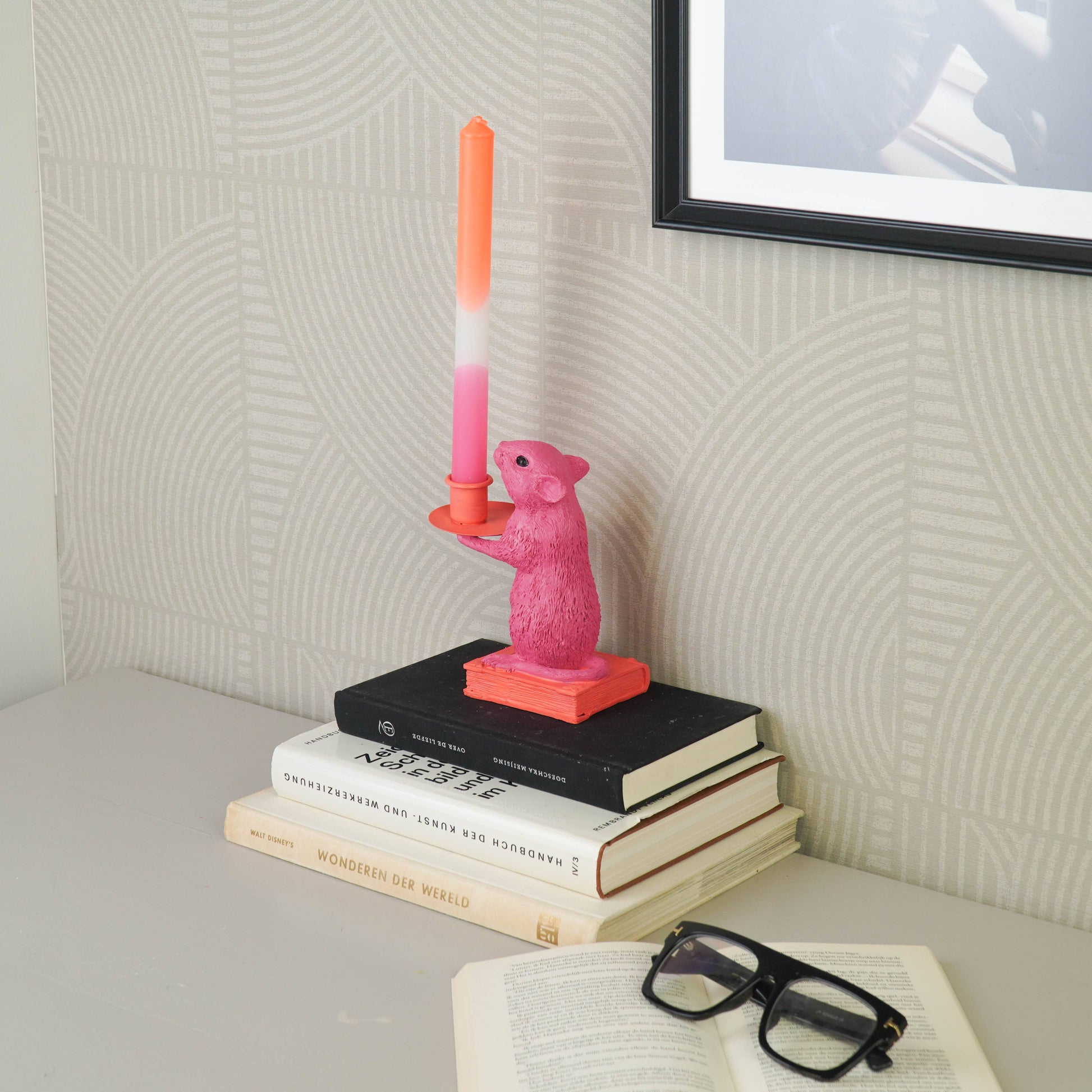 Bougeoir - Souris - Polyrésine - Rose/Rouge - 8x10x17cm
