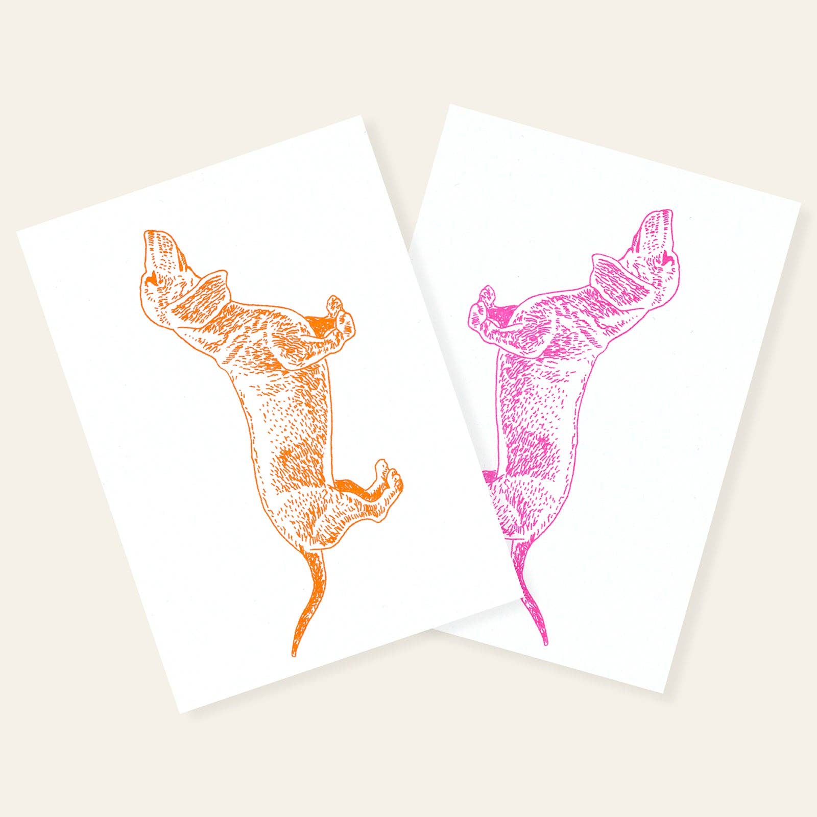 Imprimée en risographie écologique sur un papier Munken 300 g au toucher raffiné, cette carte allie humour, design et artisanat durable.