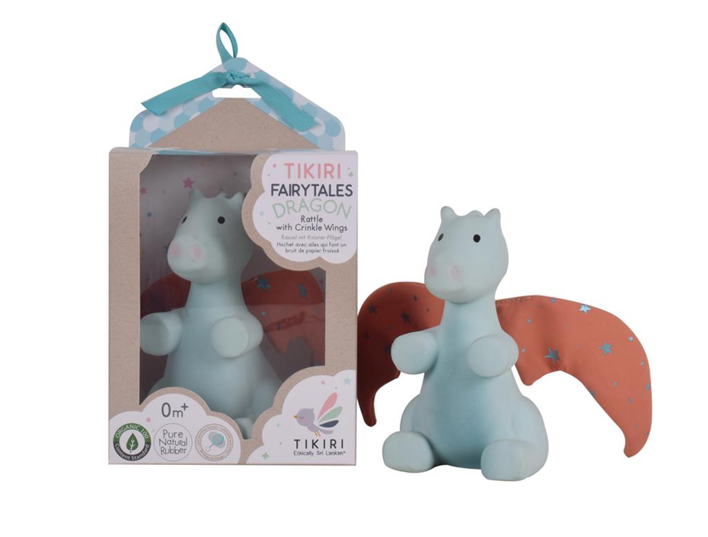 Tikiri Contes de Fées: DRAGON de Soleil avec des ailes rouges 13cm, en caoutchouc naturel et coton, en boîte fenêtre, 0+