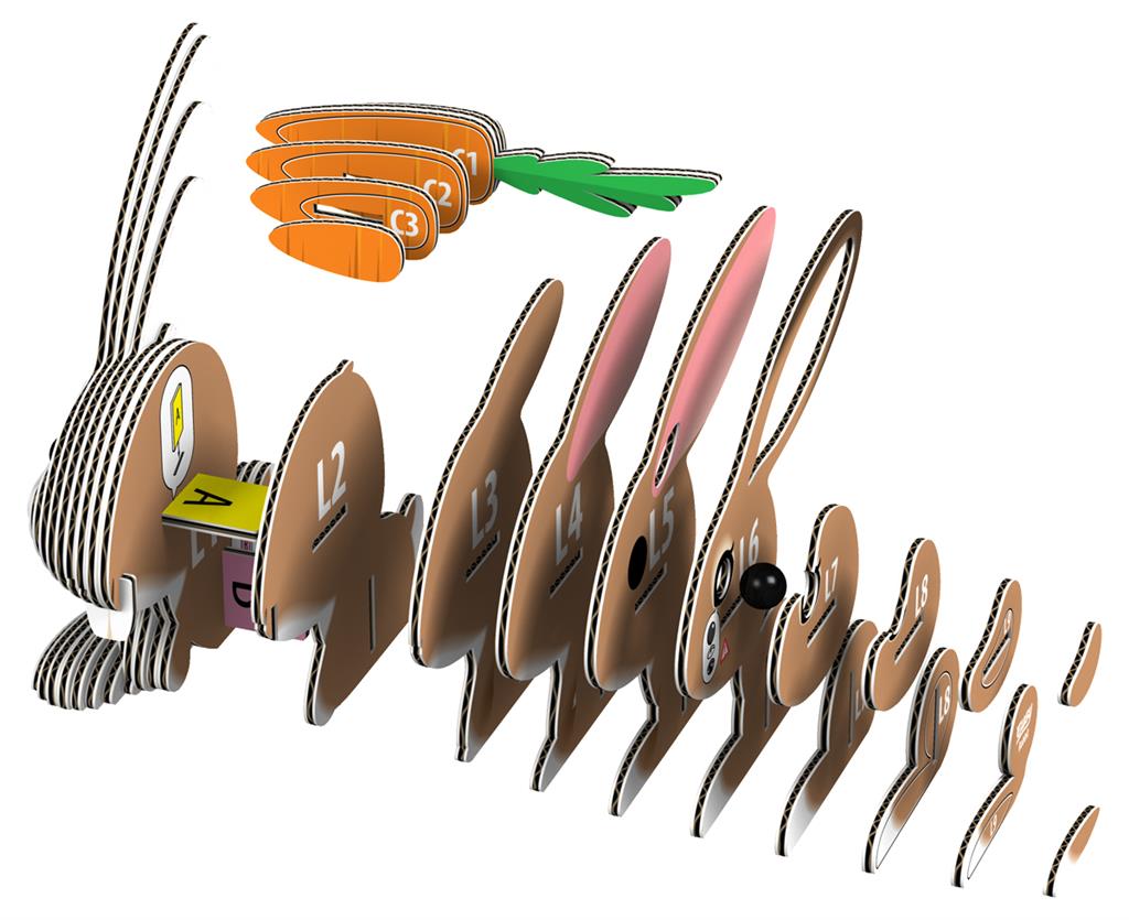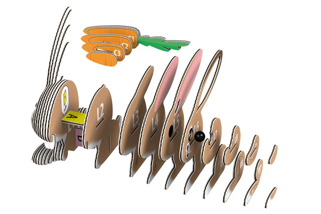 Eugy 3D Modèle: ANIMAL DE FERME / LAPIN 7,1x3,4x6,5cm, en carton, en boîte, 6+