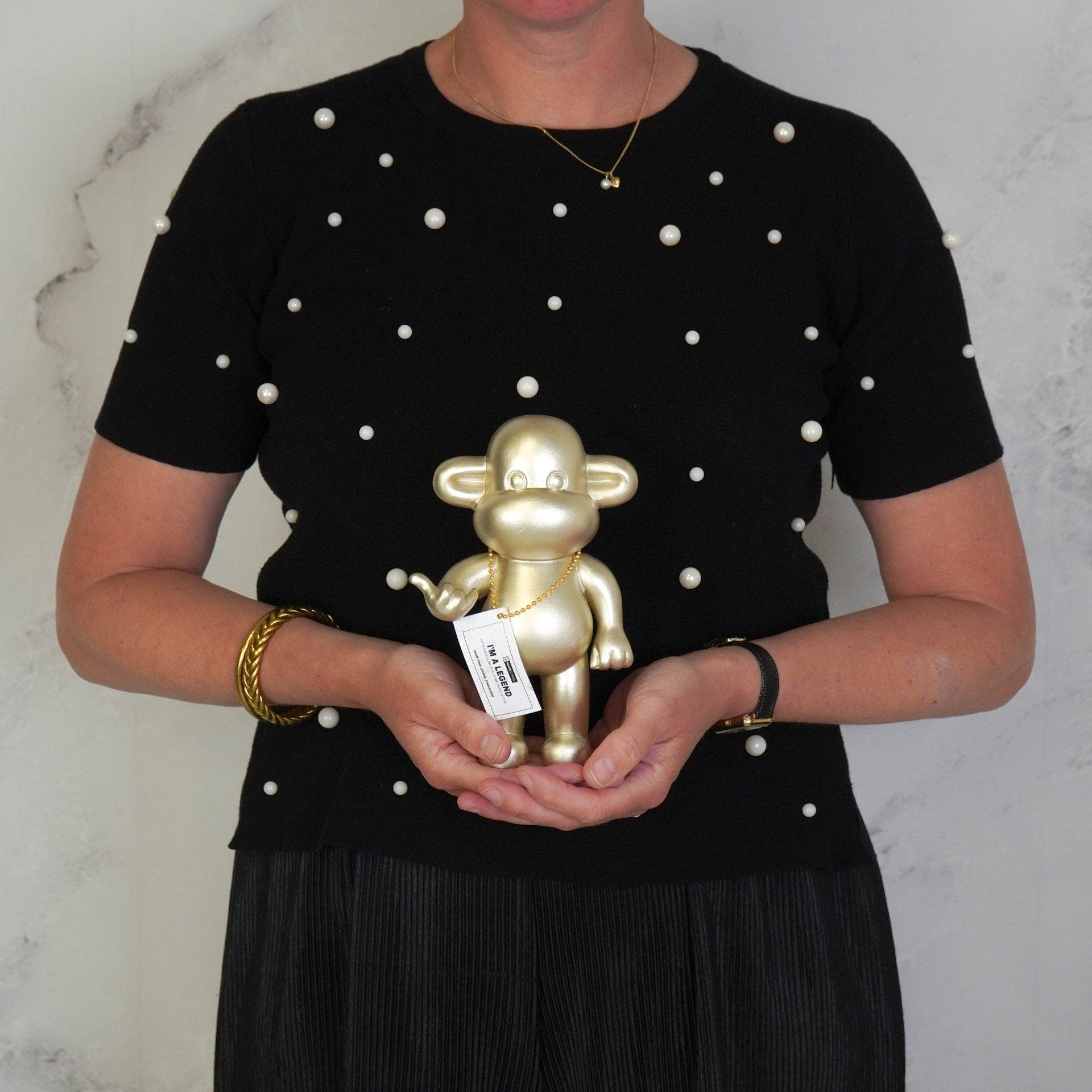 RENCONTREZ LA LÉGENDE ! La figurine de singe Legend est un design original de Housevitamin. La Légende est forte, indépendante et pleine de plaisir. Essayez de le faire tomber, vous n'y parviendrez pas. Essayez de le rendre petit, il s'en moque. Il est là pour un seul objectif : s'amuser, s'amuser sérieusement. Cette statue de singe montre une main 'Hang Loose' pour vous donner une ambiance plus détendue et joyeuse. Faites de la place pour la légende et profitez du voyage ensemble. Détendez-vous et amusons-nous, amusons-nous sérieusement avec la légende ! Montrez votre légende : #thelegend.
