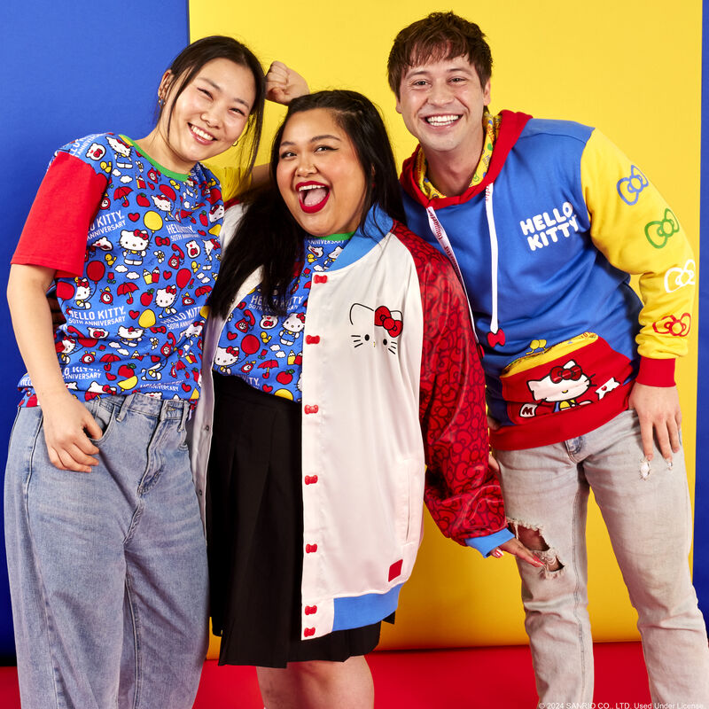 Attachez votre nœud et dites bonjour avec un style super mignon ! Notre t-shirt unisexe Loungefly Sanrio Hello Kitty 50e anniversaire est un excellent moyen de partager des sourires et votre fandom préféré. Des blocs de couleurs vives ajoutent une touche de bonheur à ce t-shirt confortable, qui comporte une manche rouge et une manche jaune, avec un anneau vert autour de l'encolure dégagée. Au milieu, sur fond bleu, un motif festif « Hello Kitty 50th Anniversary » met Hello Kitty à l'honneur. Des objets amusants qui lui sont associés, tels que des crayons de couleur, son bocal à poissons, son téléphone, son arc, ses cœurs et d'autres surprises, font également partie du motif. Élargissez votre cercle d'amis partout où vous allez avec ce t-shirt lumineux à manches courtes.