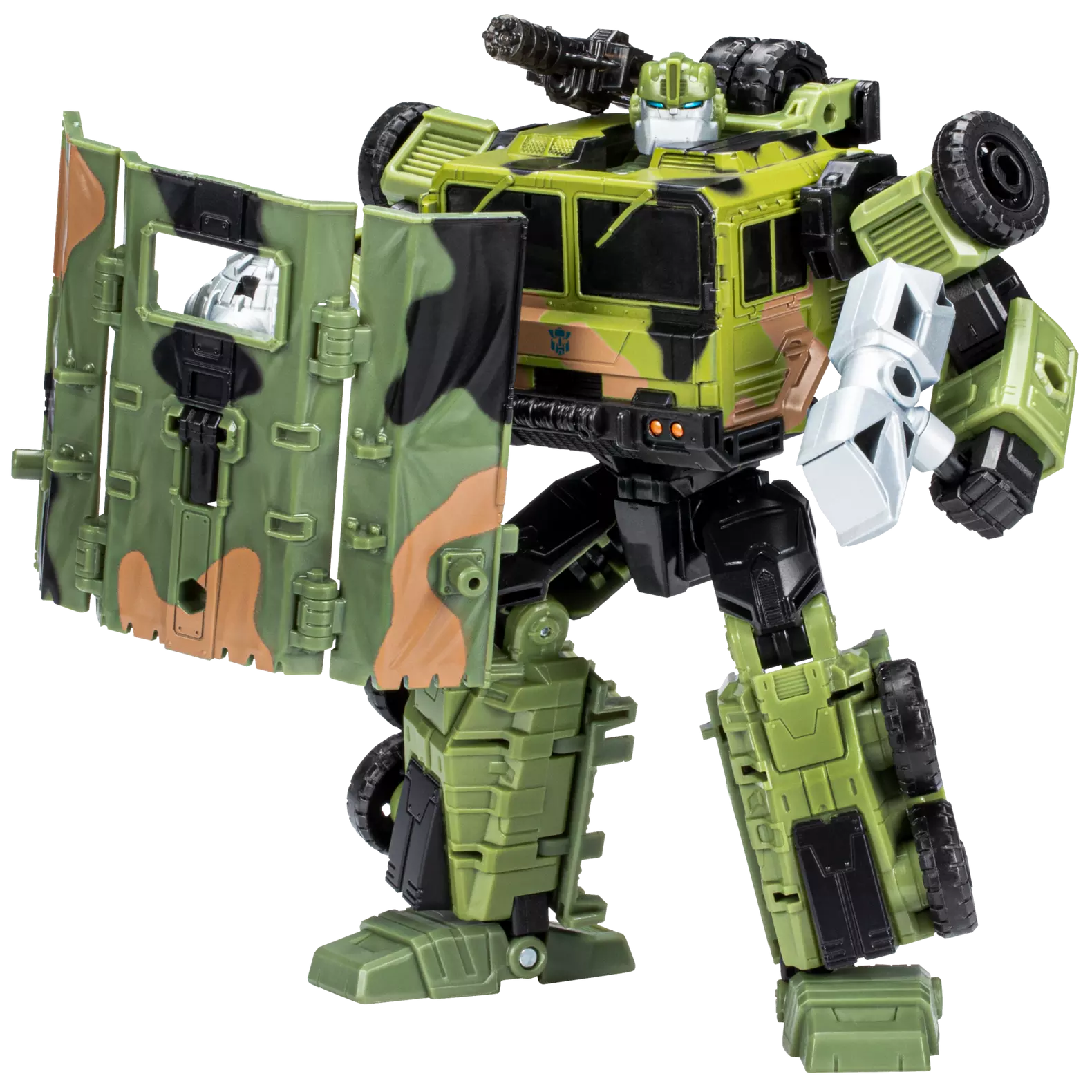 • La figurine Bulkhead de Prime Universe se convertit en fourgon militaire en 31 étapes. Inclut une masse, un bouclier, un marteau et 2 blasters.