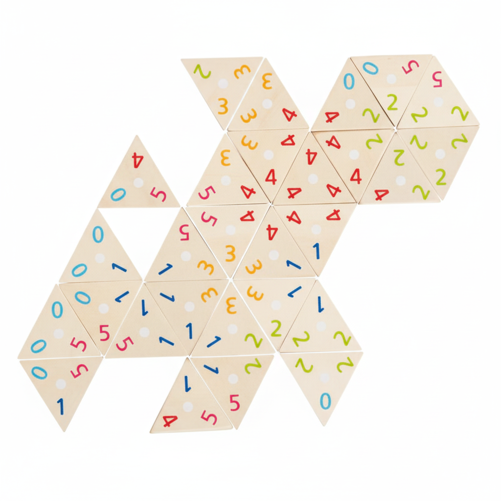 Dominostenen: Driehoekig met cijfers, 3,4 cm, 76 stuks, hout, 5+