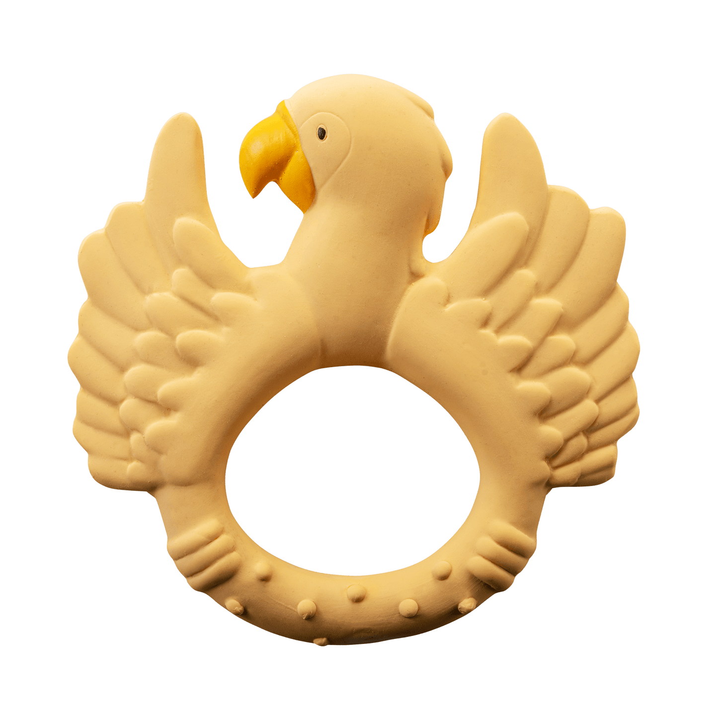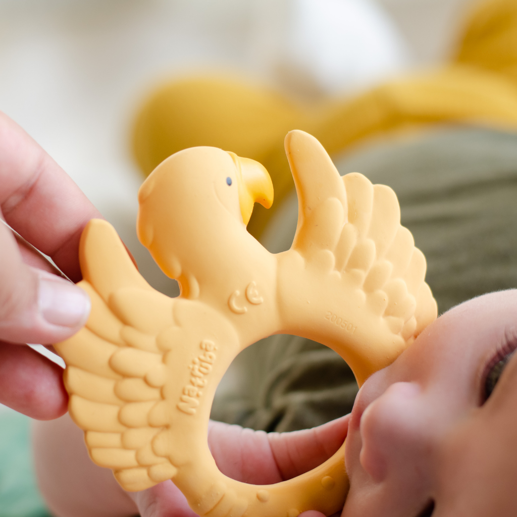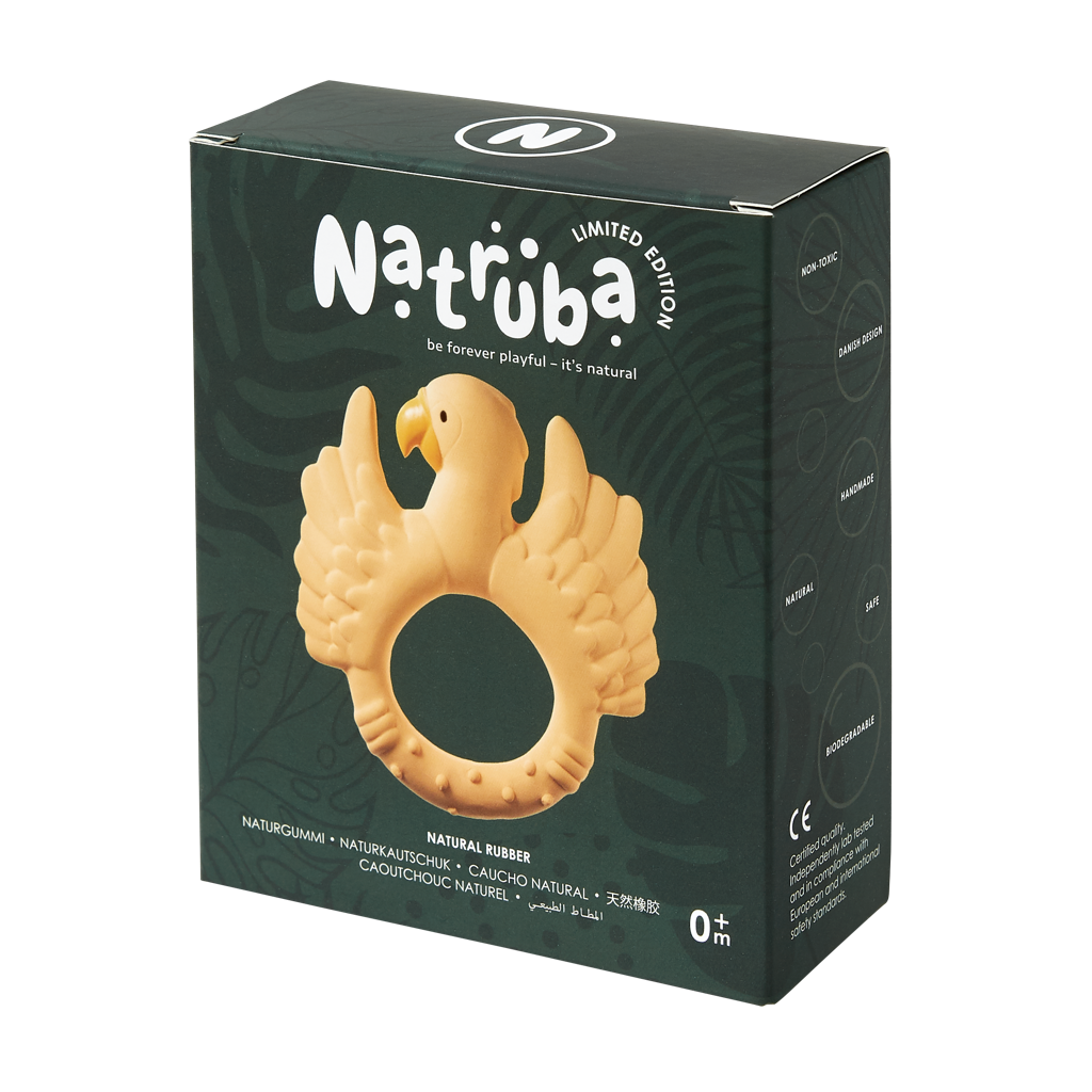 The Natruba Parrot - Limited Edition Color - is easy for little hands to grasp and perfect relief for sore gums. The parrot has different surfaces for sensory play and features both soft and hard natural rubber to satisfy all stages of sore gums. The bright color stimulates your child's vision.