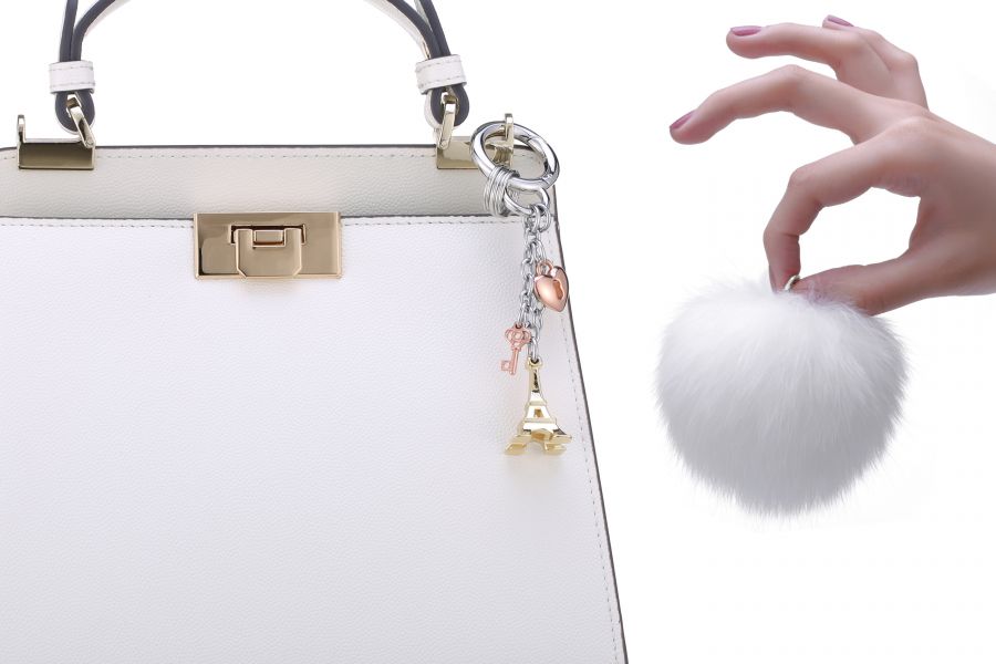 - Material: Zinc alloy + White Pompom (artificial fox hair)