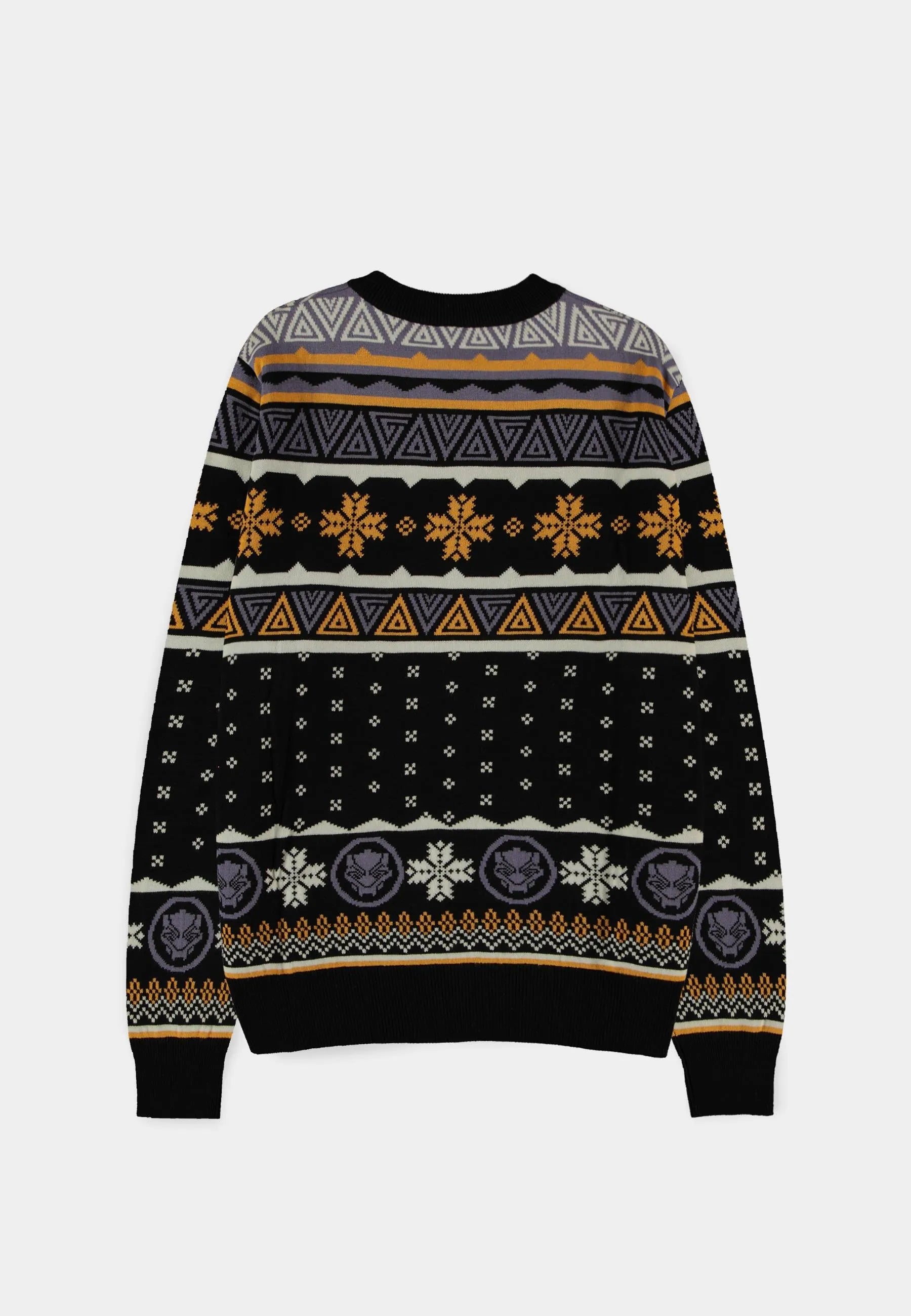 Show everyone that you believe in “Wakanda Forever!” » this holiday season with this unique and premium Black Panther Christmas sweater. With a gold, black and purple knitted design, this Christmas sweater features eye-catching Black Panther details that will be a hit conversation starter for your fellow Marvel fans!