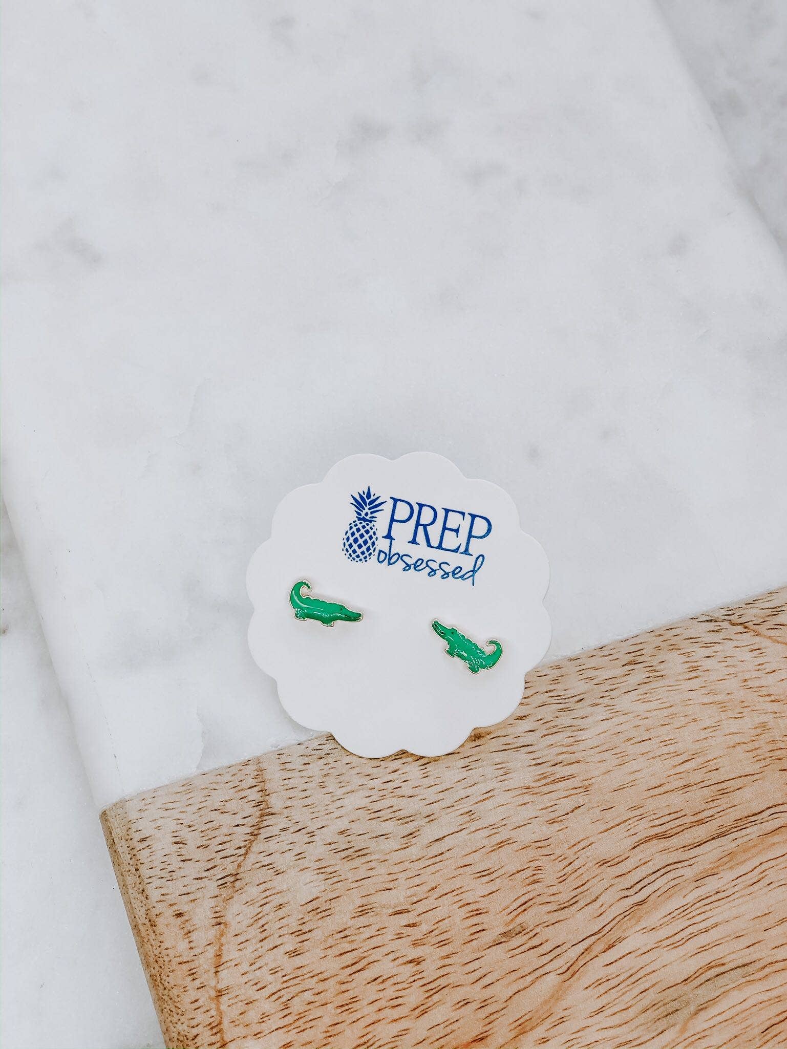 Discover the charm of Prep Obsessed with our Signature Gator Enamel Stud Earrings. Measuring 0.40 inches, these studs are lead and nickel compliant, ensuring a safe and comfortable wear. Founded by Nina & Corey, Prep Obsessed is committed to bringing you the most stylish accessories. These earrings embody that commitment. Enjoy the elegance of our Signature Gator Studs, a delightful addition to your jewelry collection.