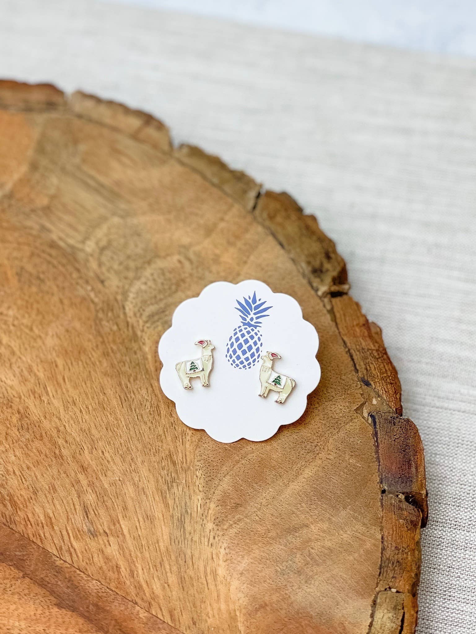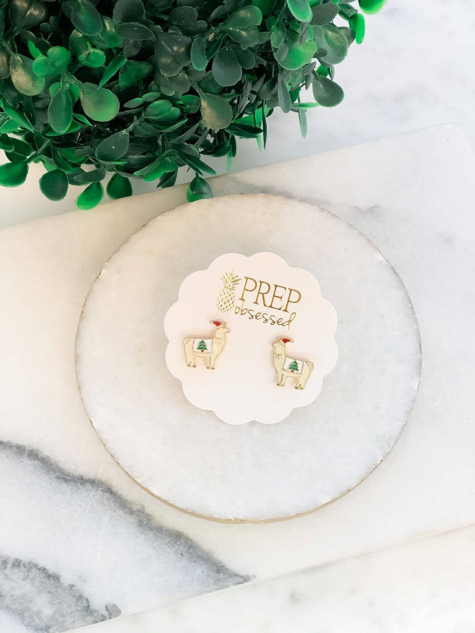 Discover the magic of the holiday season with the Prep Obsessed Christmas Tree Llama Enamel Stud Earrings. These charming 1/2" center stud earrings are a delightful addition to your holiday wardrobe. Designed with care and precision, they embody the spirit of our brand and bring joy and style to every occasion. Prep Obsessed is committed to unique accessories, apparel, and gifts, and these earrings are no exception. Add a touch of whimsy to your holiday ensemble with our Christmas Tree Llama Earrings.