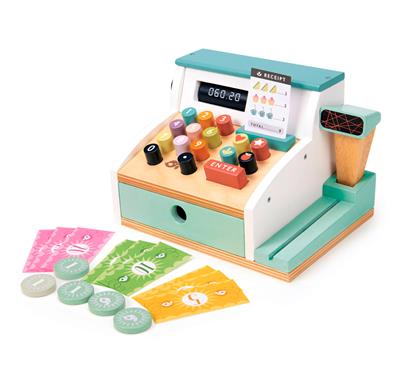 Tender Leaf Market Day: CASH REGISTER with SCANNER 22x15x13.8cm, with accessories, wooden, in box, 3+