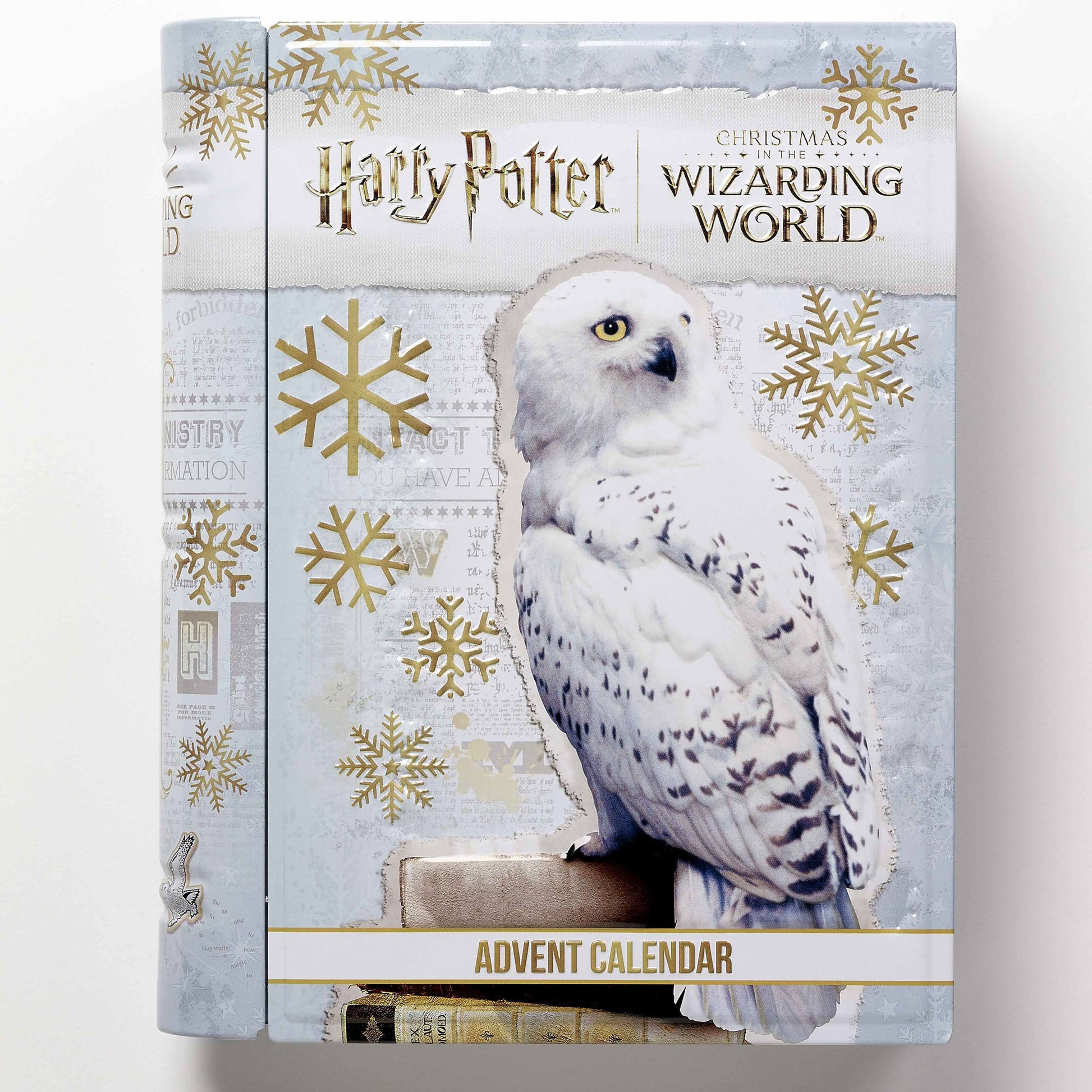 Harry Potter Boxed Advent Calendar This Harry Potter box opens to reveal two layers of gift boxes to open each day until Christmas and is a must for any Harry Potter fan. The boxes contain 24 products from the Harry Potter jewelry and accessories range. The box is decorated with an image of Hedwig and is branded Harry Potter. Length 24 cm, width 19 cm, depth 5 cm. Suitable for adults ages 12 and up.
