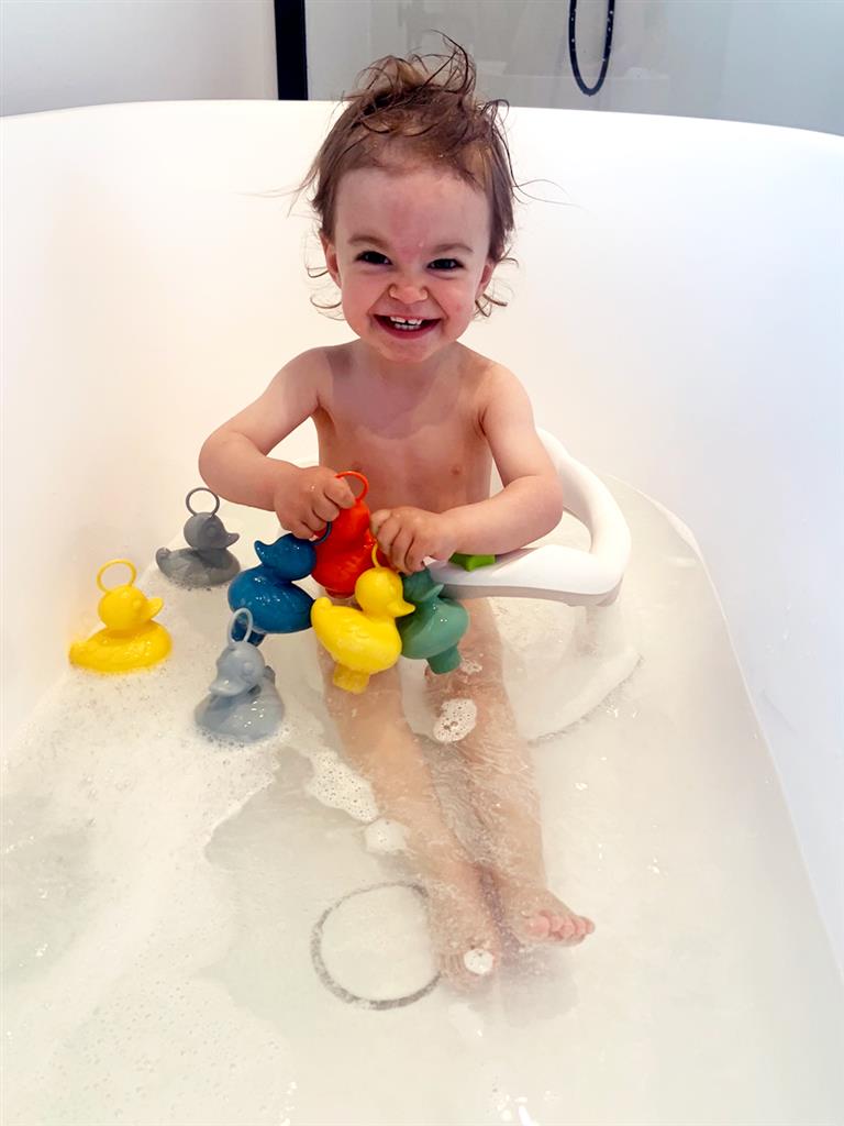 Many remember the childhood trip to Tivoli and the obligatory visit to the duck pond where the ducks sailed in circles. A place where victory was guaranteed when a duck took the bait. Whether the prize is in the bathtub or in the water basin at home is up to each individual, but the magic remains the same with Scratch's duck fishing game, as it was in Tivoli. The set includes six happy ducks, all floating beautifully in the water thanks to the counterweight at the bottom. All ducks have a loop on their heads, making them easy to catch with the included fishing rods. The child can either fish alone or share the experience with another, as there are two fishing rods. A fun game could be to draw numbers on the bottom of the ducks using a waterproof marker and practice counting. Here, the whole thing comes in a bioplastic model, made from sugar cane.