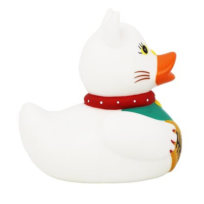 A lucky cat transformed into a rubber duck to bring you luck even at bath time!