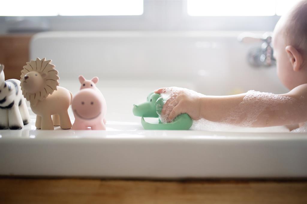 Natural rubber bath toys and teething rings.