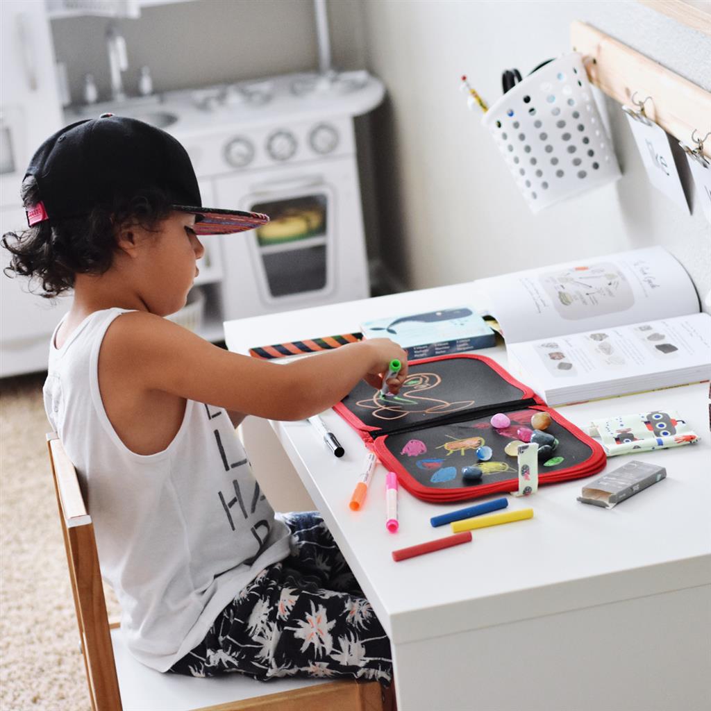 The reusable jaq jaq jaq notebook will no longer leave your children's bags. Liser, flexible and resistant It offers 8 pages to fill with drawings and colors with the Craies Butter Stix without dust which are slipped into their small case. An ideal creation medium that we take everywhere!