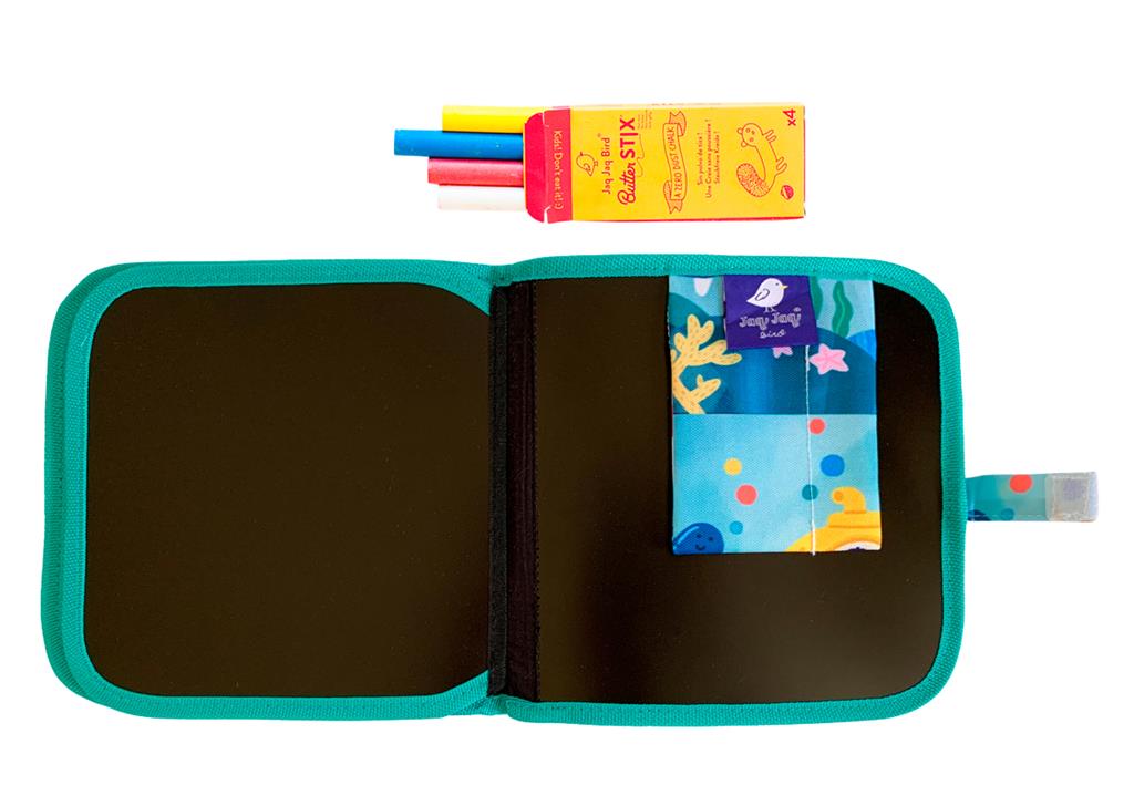 The reusable jaq jaq jaq notebook will no longer leave your children's bags. Liser, flexible and resistant It offers 8 pages to fill with drawings and colors with the Craies Butter Stix without dust which are slipped into their small case. An ideal creation medium that we take everywhere!