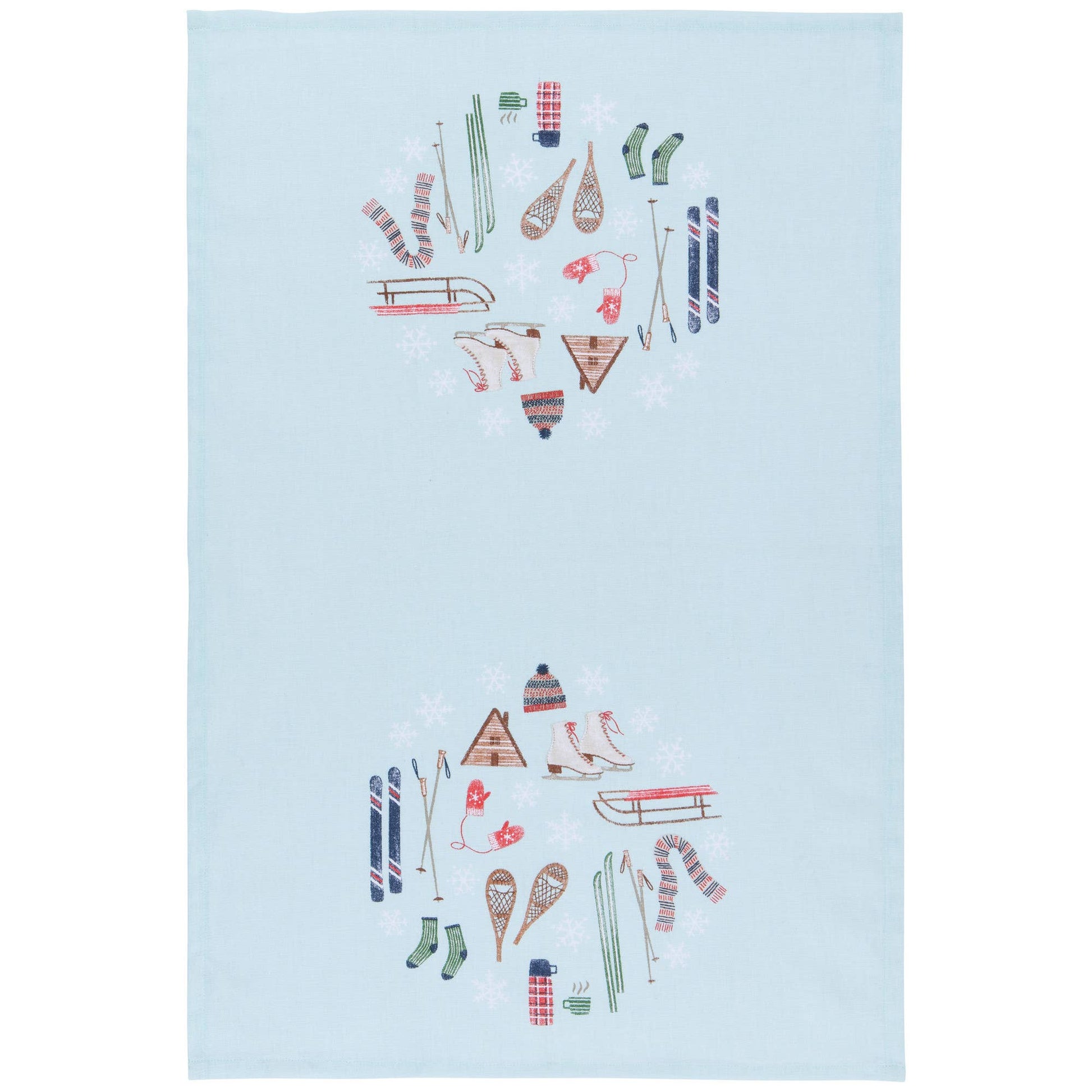 Keep the memory of winter holidays on the slopes alive in your home with this Alpine Adventure kitchen towel set from Now Designs. From the kitchen to the dining room and beyond, these towels bring life and character to everyday cooking and cleaning tasks. Slip a few over your oven handle to enjoy their perfect combination of form and function. The 100% printed cotton construction of these kitchen towels makes them ideal for drying hands or polishing glassware and cutlery, leaving a lint-free, streak-free shine. Keep a printed towel around your coffee bar for quick cleanups or to cover dough as it rises. These versatile towels are a classic kitchen essential that can handle it all.