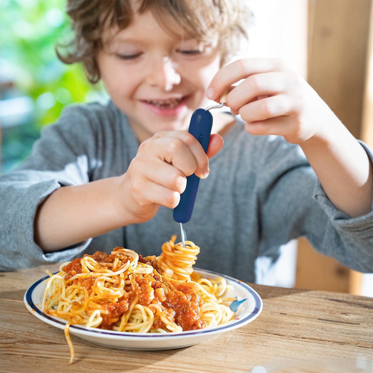 a tour of their pasta. With our high-tech spaghetti fork, we're turning the tables. Using the crank, they can easily wind them up now.