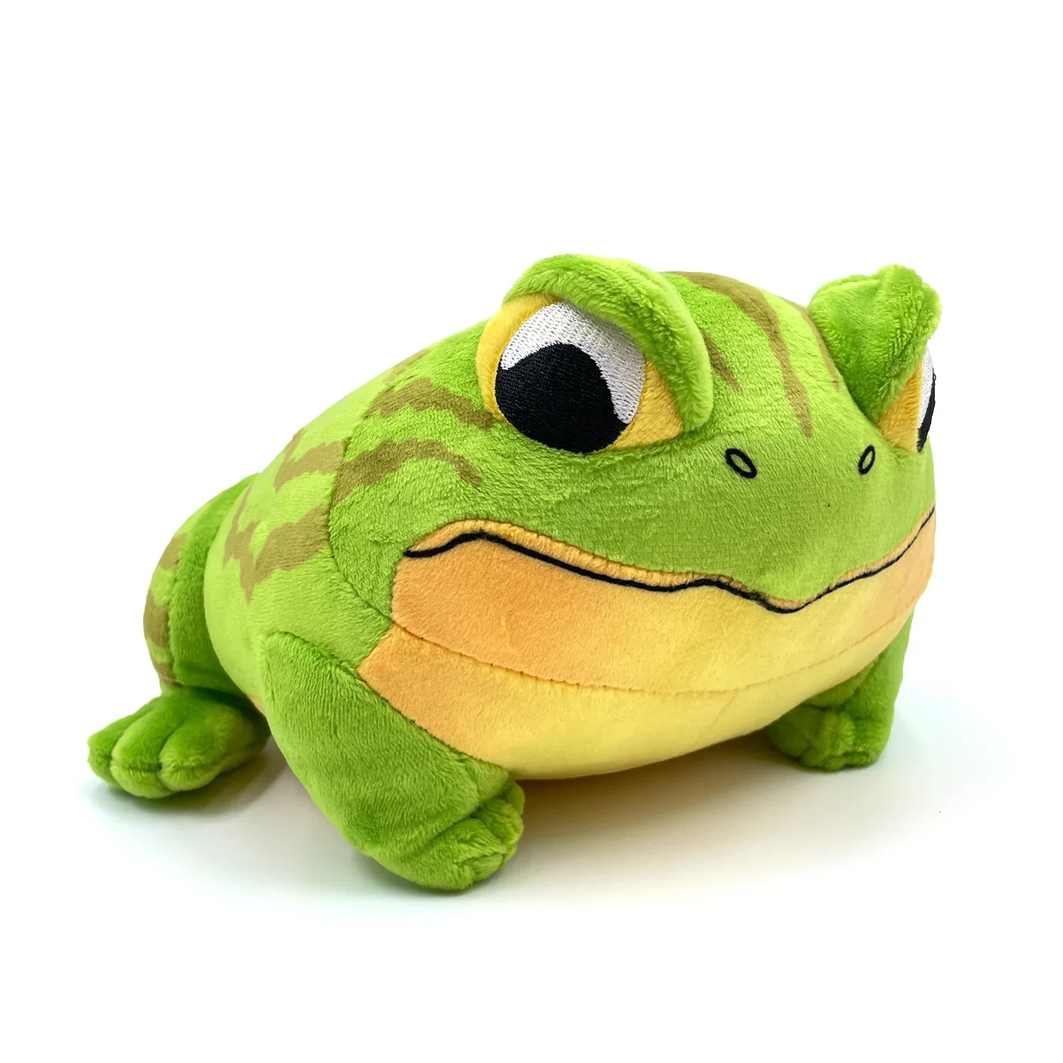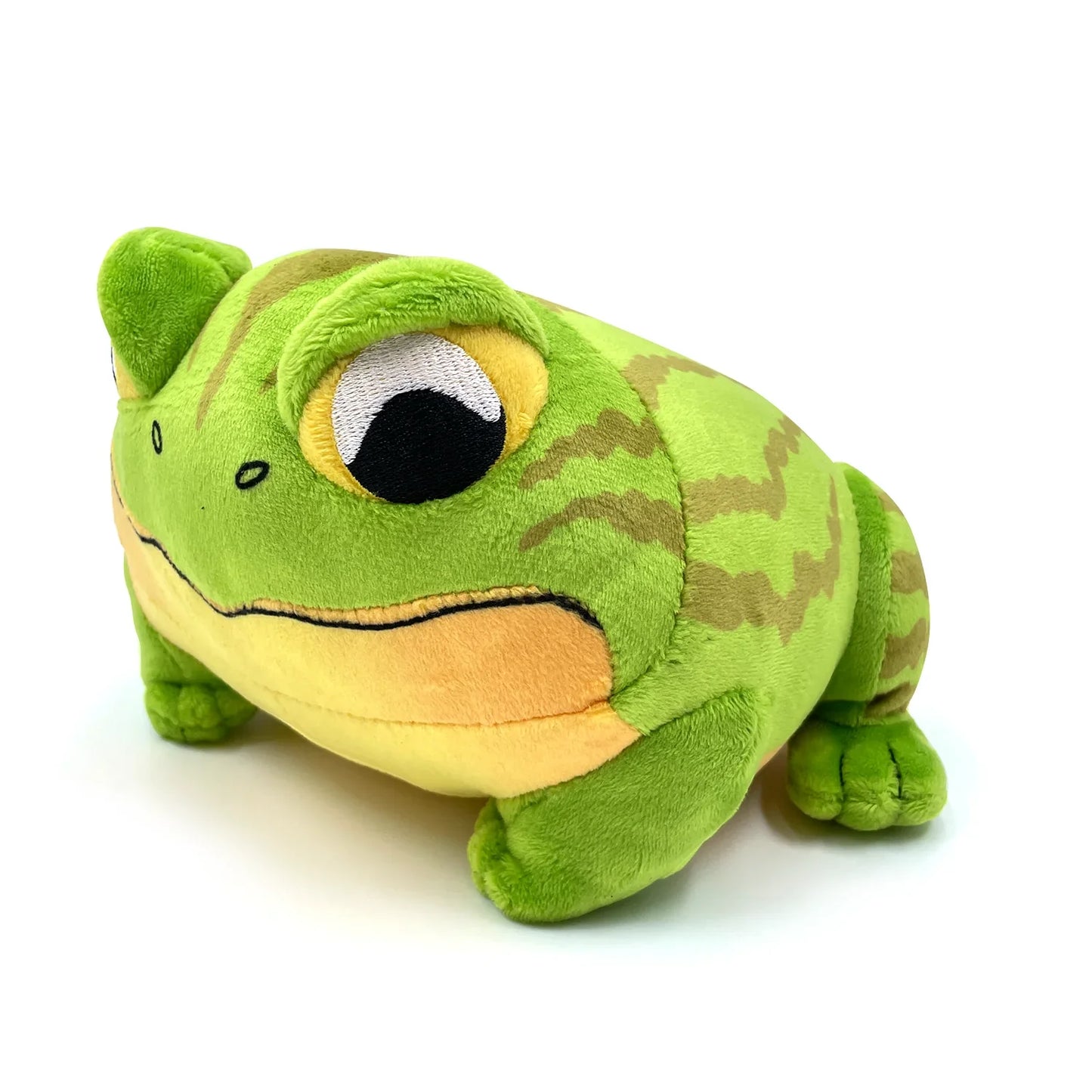 Georgie makes her glorious entrance! This magnificent African bullfrog specimen jumps into Youtooz at a squishy 5.5 inches tall and 9 inches wide. Its four legs extend from a soft green body marked with distinct dark green streaks, while its belly is a mix of golden tones. His glistening black eyes stare at you filled with a wisdom only he can divulge above the pursed frog lips that hold back a world of insight. This plush toy is wrapped to the seams with 100% PP cotton and is made of sublimated minky material, absolutely perfect for cuddling or being the best zoo buddy!