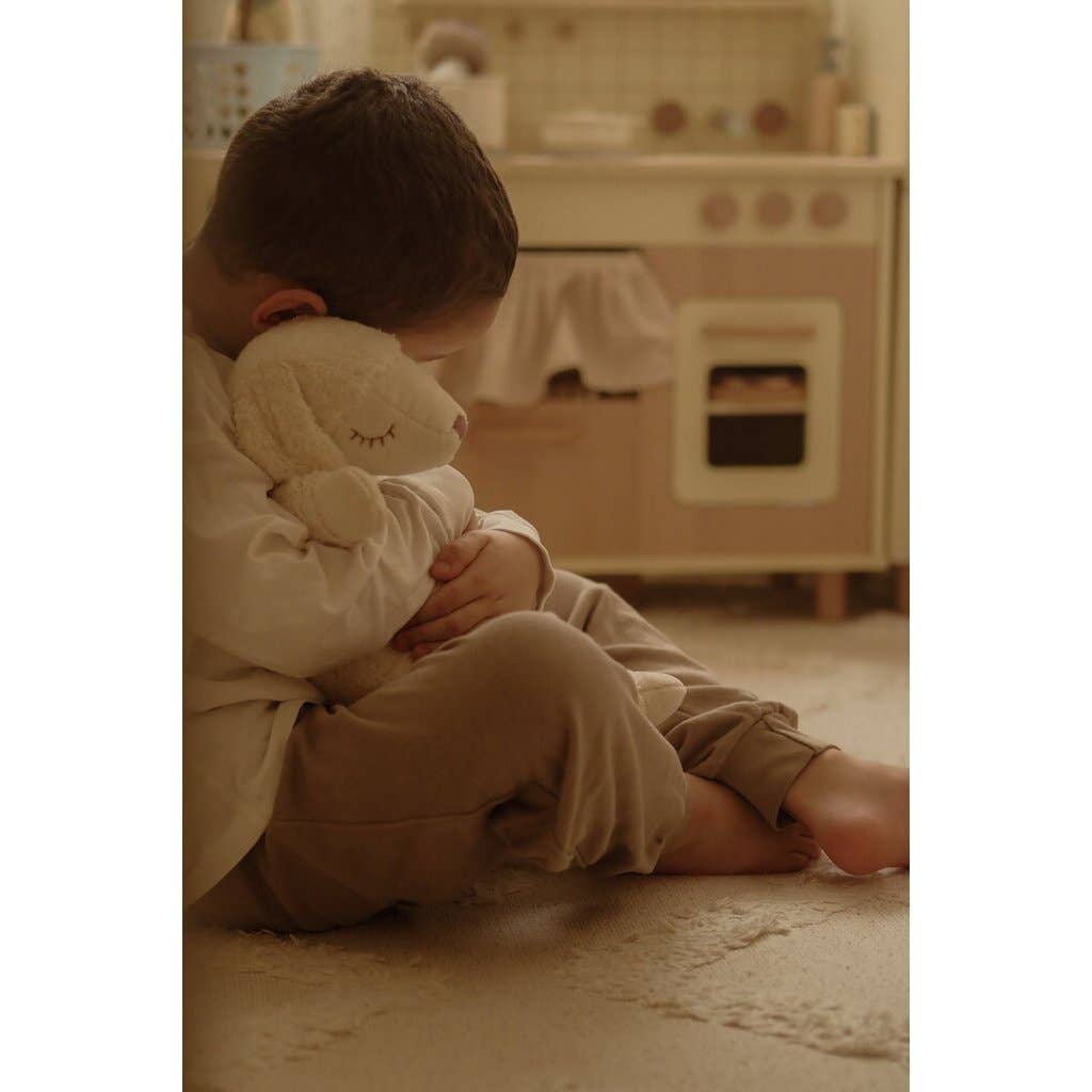 The large white sheep-shaped heating pad from Senger-Naturwelt combines softness and comforting warmth. Filled with natural organic spelt hulls and sheep's wool, it provides soothing heat, ideal for relaxation for both children and adults. Made in Europe with GOTS-certified sustainable materials from Germany, it is perfect as a cushion or decorative plush toy.