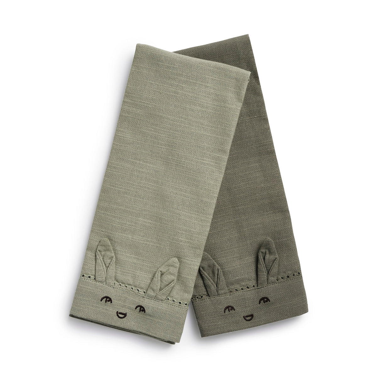 Lot of 2 adorable cotton table towels, embroidered with a pretty little rabbit head and its 2 ears.