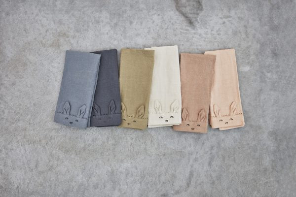 Lot of 2 adorable cotton table towels, embroidered with a pretty little rabbit head and its 2 ears.