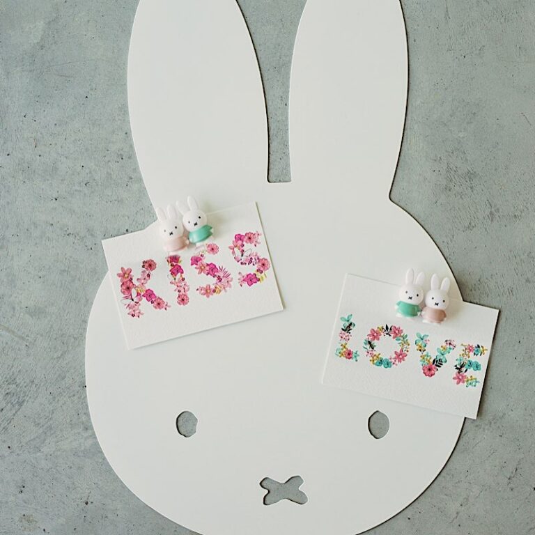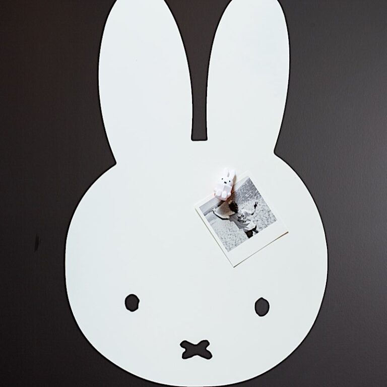 A magnetic table in the shape of a miffy, which can receive all your magnets and notes. To be fixed to the wall. Product fully manufactured in Belgium.