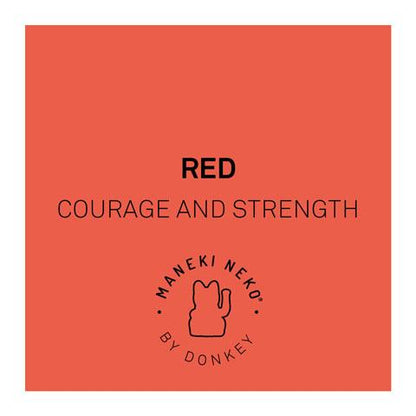 Although the cute little lucky cat, measuring 9.8 cm, may not look particularly fearless, its red color brings courage and strength. Just like its 15 cm big sister, the mini cat should remind you to be brave and strong.