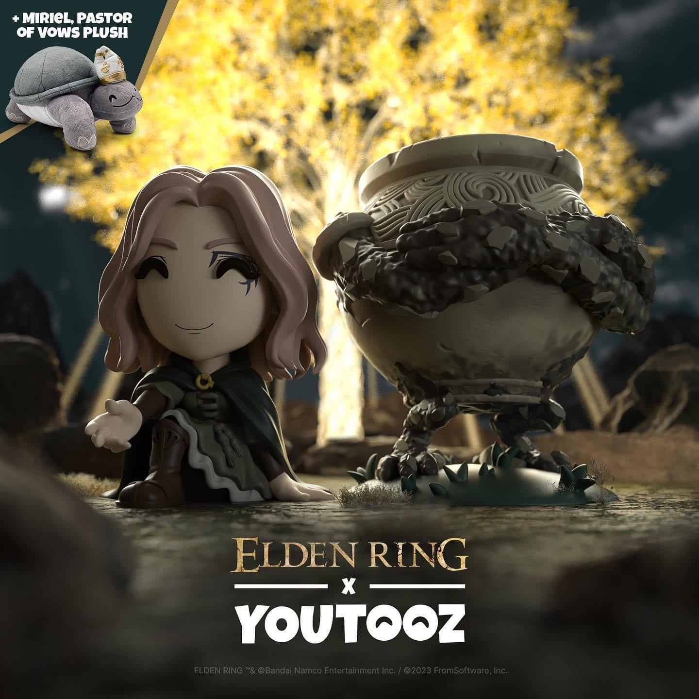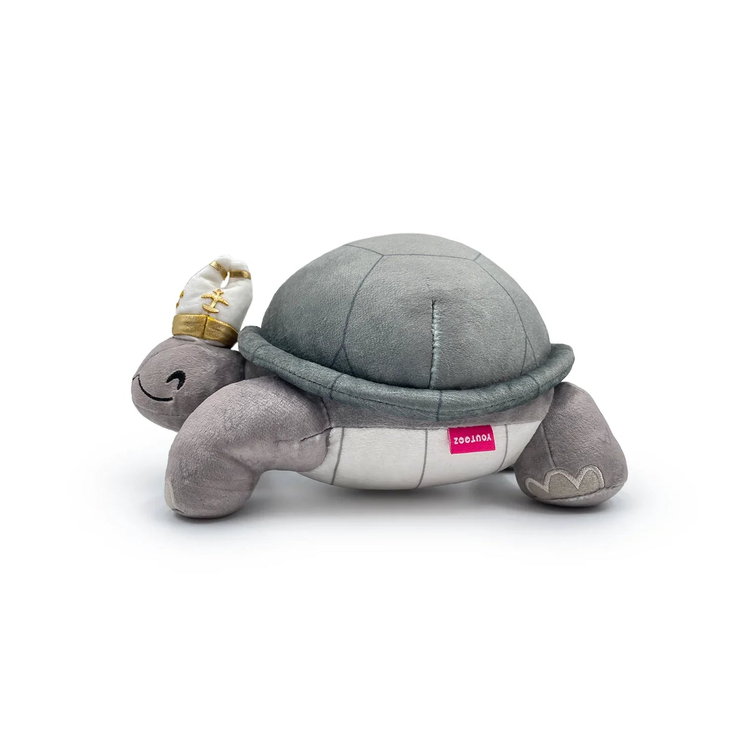 Miriel, Pastor of Wishes, arrives at Youtooz to give us all their blessings! At 9 inches tall, its large green and brown shell protects the soft-scaled, yet incredibly sturdy, brown body that emerges from its safety! Its legs and head extend outward with a gentle smile as a white miter rests on their heads, its golden ornaments shining as brightly as the light of the Erdtee! This plush toy is wrapped to the seams with 100% PP cotton and is made of normal, sublimated and shiny minky materials, absolutely perfect for cuddling or teaching you the craziest witchcraft and incantations!