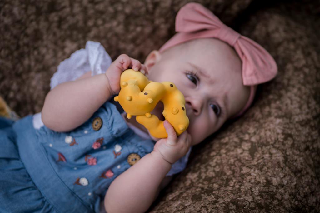 Natural rubber bath caterpillar and teething rings.