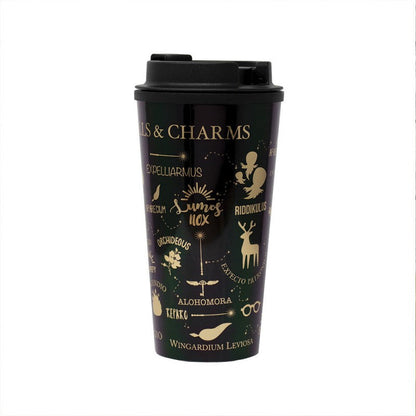 A SPELLS & CHARMS TRAVEL MUG FOR HARRY POTTER FANS.