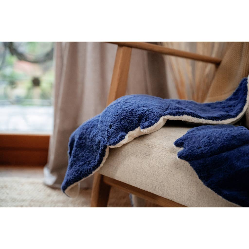 The large blue manta ray from Senger Naturwelt's "Marine Animals" collection combines sustainable design with cozy warmth. Made from GOTS-certified materials from Germany and Europe, it serves as a heating pad, a plush toy, and a stylish decorative piece. Ideal for little hands to cuddle or even as a blanket, for parents, it's a statement of sustainability.