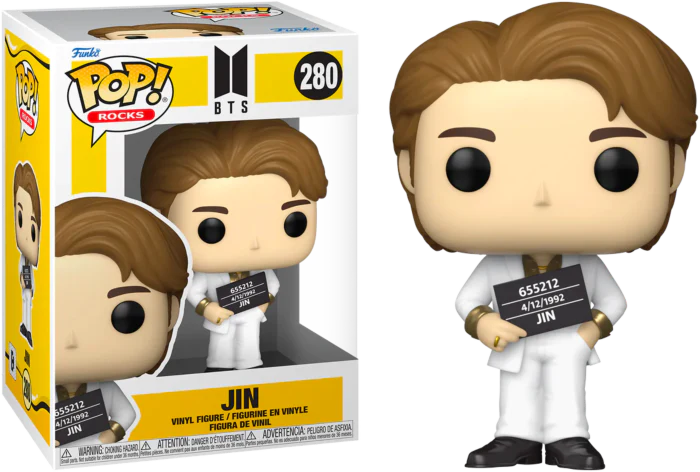 Your music collection may melt at the sight of these Pop! figures for BTS! Pop! Jin strikes a criminally stunning pose while holding a sign. Invite this BTS member to stage a performance in your collection as a Funko Pop! figure! Vinyl figure measures approximately 4.1-inches.