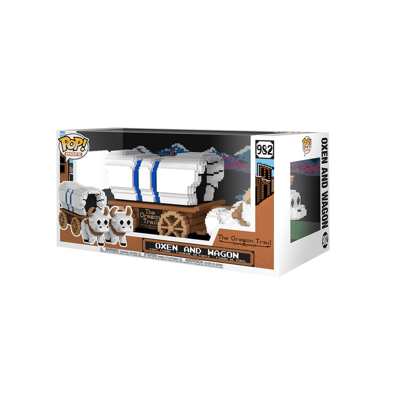 It's time to hit the plains! Get ready for your journey with Pop! Oxen with Wagon! This collectible is straight out of the screen in 8-bit style. Enhance your The Oregon Trail™ set by adding this Super Deluxe Pop! Ride to your Pop! game collection. Vinyl figure stands approximately 4.5-inches tall.