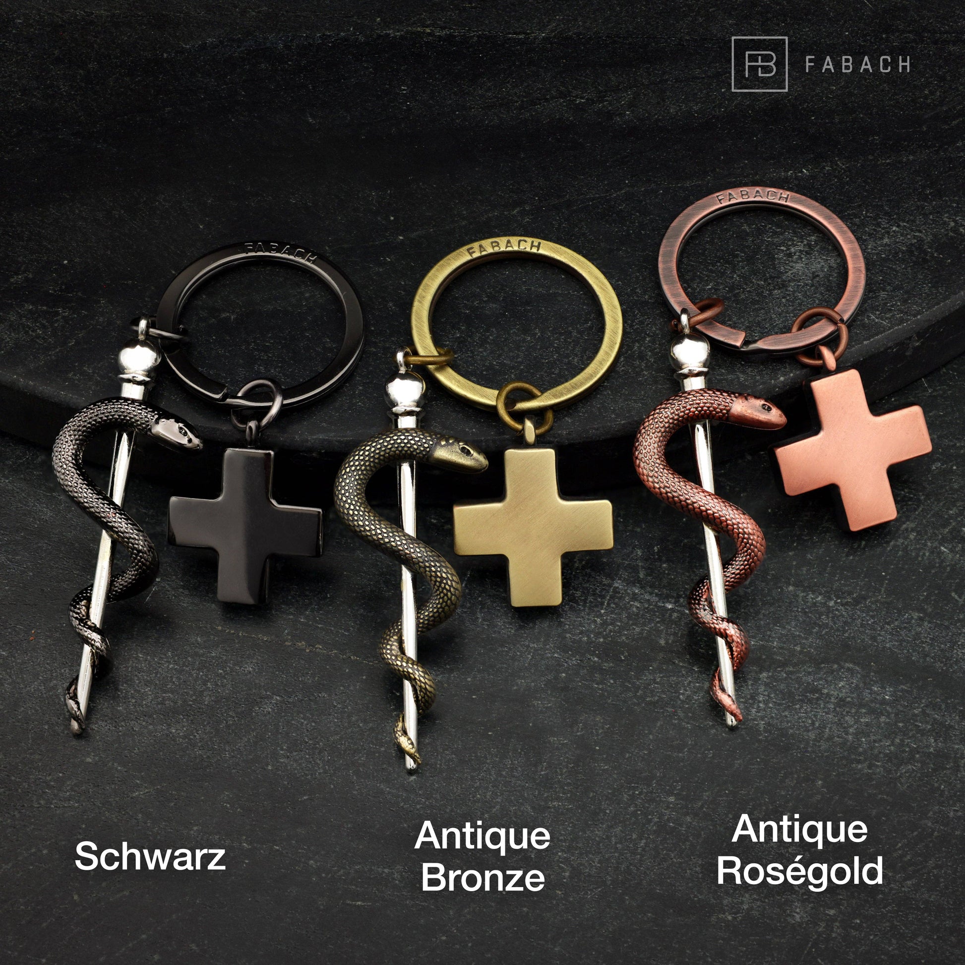 🐍 Asclepius - In the sign of the snake: The Rod of Aesculapius is the symbol of medicine and medicine. The staff wrapped in a snake was originally the attribute of Asclepius (German: Aesculapius), the god of medicine in Greek mythology. Together with the medical cross, the key ring represents all professions and fields of activity in the health sector, from nurse to doctor, from geriatric nurse to pharmacist.