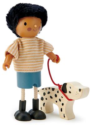 Tender Leaf Dolls Furniture: DOLL/Mons. FORRESTER and DOG 12x10x13cm, wooden, in box 11.5x5.2x17.8cm, 3+