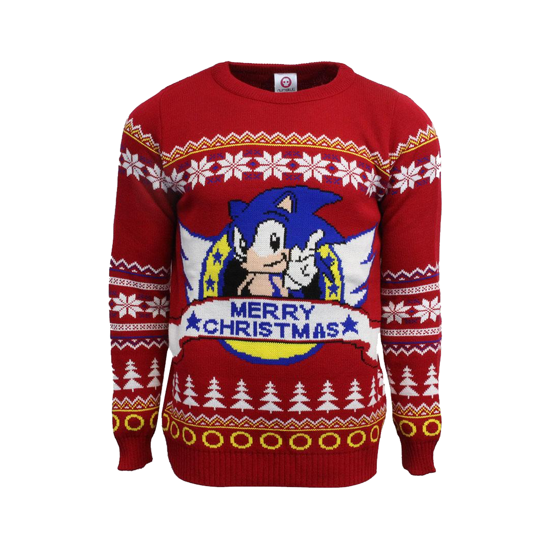Get festive and get festive with this official SEGA Classic Sonic Christmas jumper. This knitted retro gaming Christmas jumper features an image of the chili-eating dog himself, along with Sonic's iconic rings and a host of festive features so you know it's a genuine Christmas jumper!