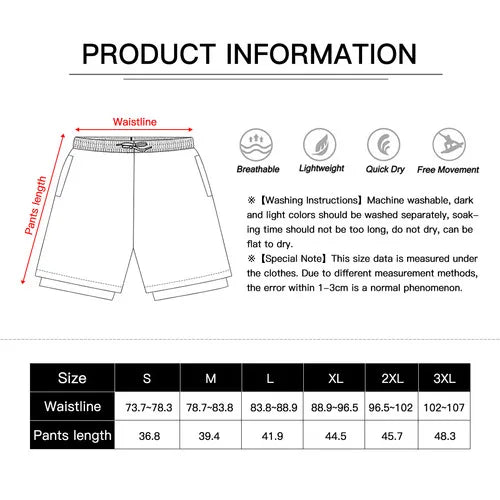 MATERIAL: Our 2 in 1 men's gym shorts are made of high-quality high-elastic fabrics, comfortable and soft, perfect fit, and have excellent anti-pilling ability, quick-drying, breathable, high moisture absorption, and bring you a light and comfortable feeling during fitness.