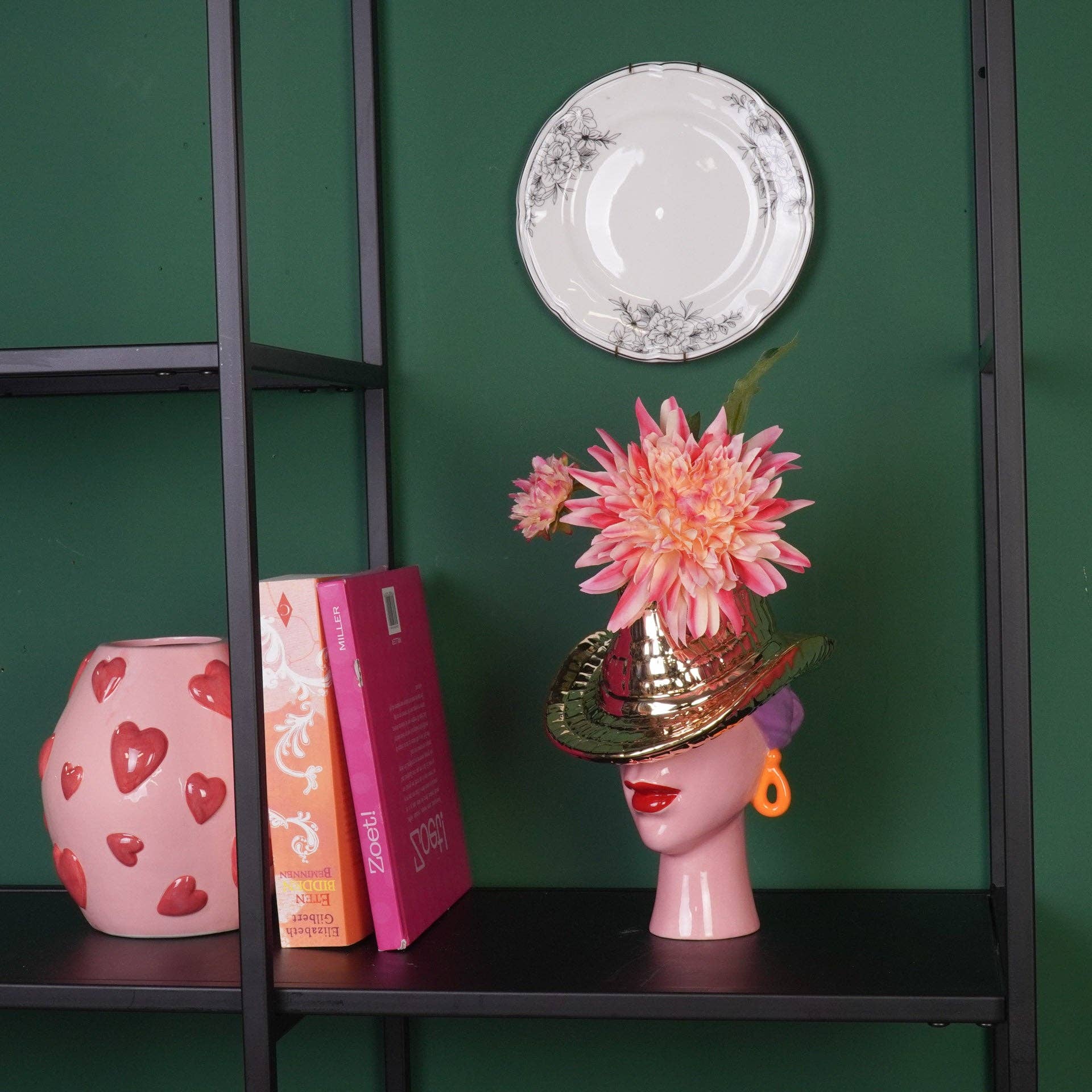 LADY WITH THE HAT – A touch of Western chic for your home! This ceramic vase in the shape of a woman wearing a cowboy hat in lilac and gold (19x16x23.5 cm) is a real eye-catcher. This feminine vase combines artistic design with a bold and feminine touch. The subtle lilac hue combined with the sparkling gold makes this vase an elegant centerpiece that makes your flowers shine even brighter.