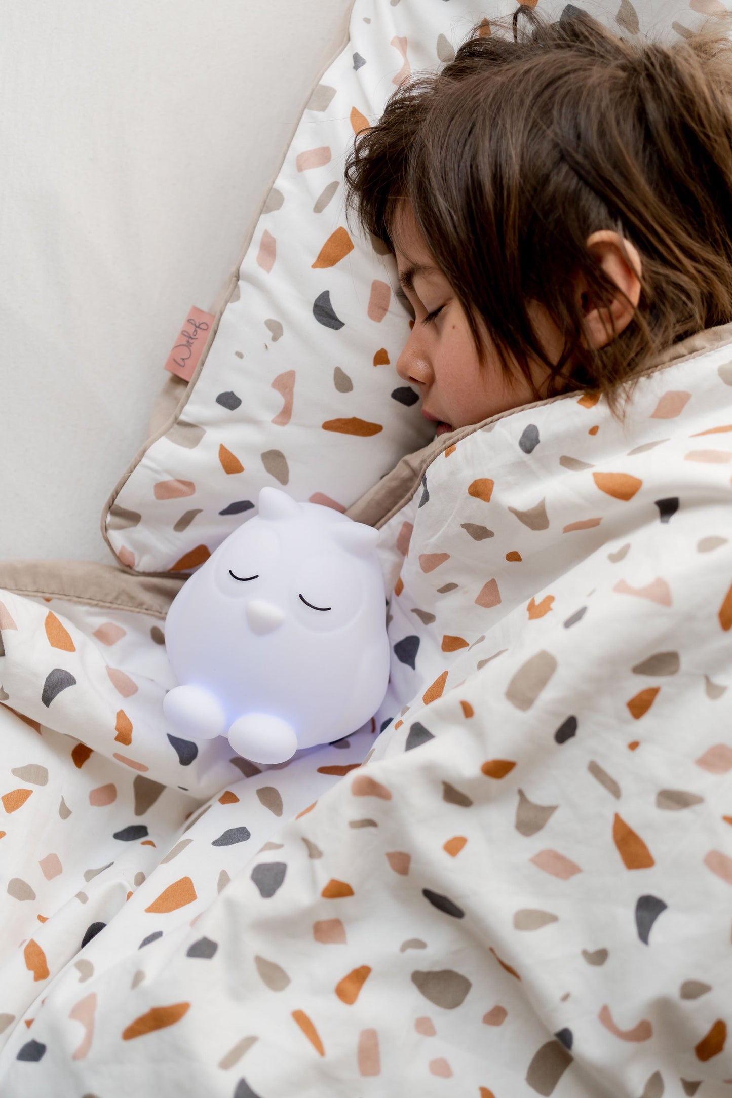 A night light that hangs on a wall branch (screws included), and turns on and off by shaking it. It changes color (4 different) each time. The lamp has a rechargeable battery inside (micro USB) and it turns off automatically after 15 minutes.