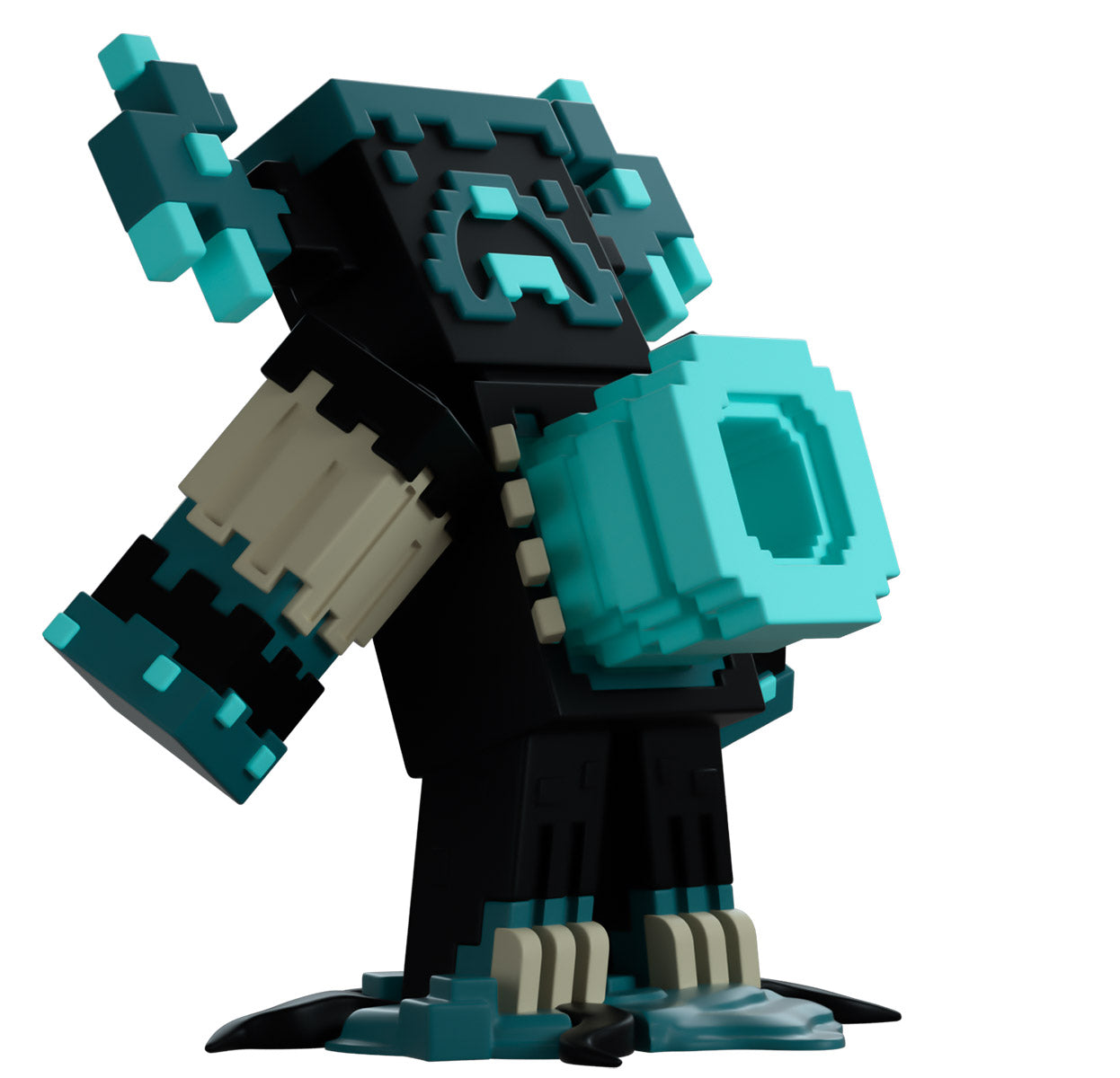Summoned in Youtooz to lean back 10.4cm tall and unleash a massive sonic boom from a dark green torso, their blocky arms are thrust back by the force of the devastating attack while a curved green mouth rests on their dark, eyeless face. With two long horns that have glowing aqua blocks extending from the side of their head, their arms are a boney brown that matches their exposed ribs and feet that are planted atop a dark seabed. The outside of their packaging sees you deep in the sea encountering a Guardian when it's too late! While the inside surrounds them with dark blue and aqua blocks, which extend onto the protective sleeve while their silhouette can be seen through the large clear window on the front of the packaging. This collectible comes in a protective matte, embossed outer sleeve and a custom-sized plastic protector for maximum protection during shipping.